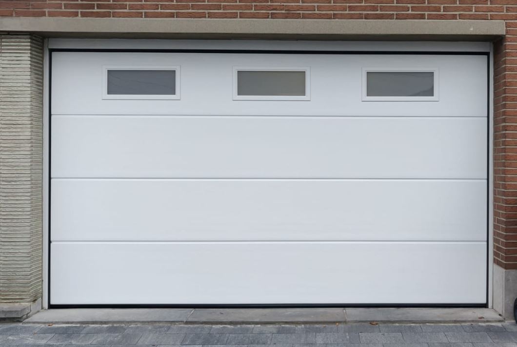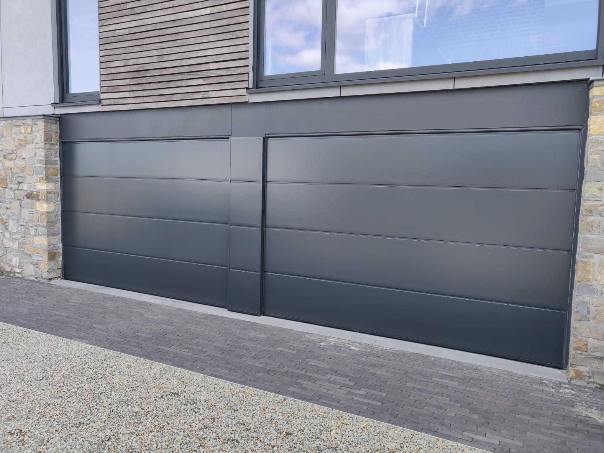 Encore un client satisfait dans la région d’Aubel !Pose d’une porte 🚪 sectionnelle ADK en panneaux lisses avec rainure intermédiaire,